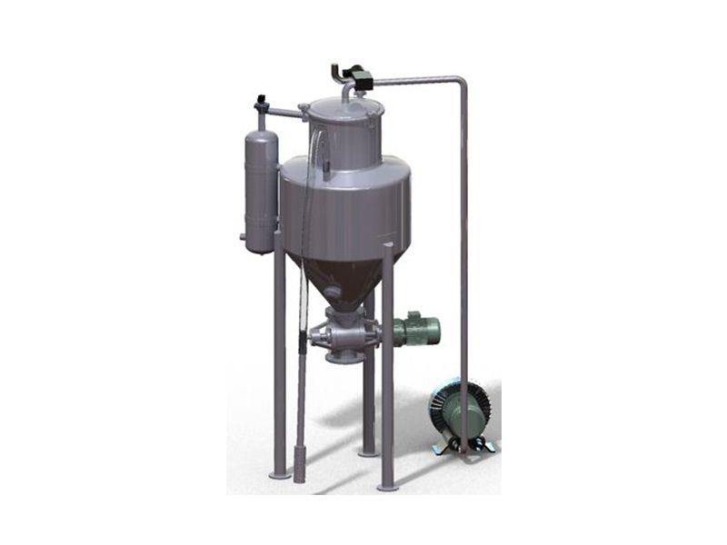 真空上料機(jī)由真空泵(無油、無水)、覆膜濾袋過濾器、壓縮空氣反吹裝置、氣動放料門裝置、真空料斗和不銹鋼可調(diào)吸料槍、輸送軟管等部件組成。